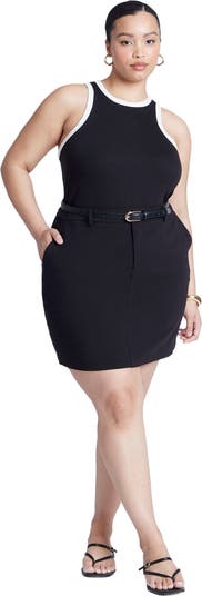A softly structured and stretchy double-cloth fabric adds easy elegance to streamlined miniskirt that is destined to elevate your workplace look.