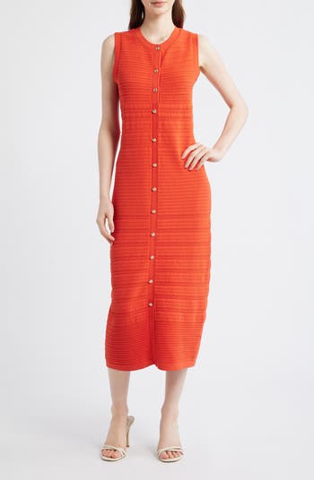 Texture does all the talking on this sleeveless, button-up midi dress with stitchwork that reads sharp and intentional.