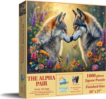 Escape into the tranquil world of "The Alpha Pair," a captivating 1000-piece jigsaw puzzle for adults by SunsOut Puzzles. Measuring 23" x 28" upon completion, this stunning scene, created by artist Abraham Hunter, immerses you in a serene landscape where majestic wolves connect amidst a vibrant field of wildflowers. Each piece interlocks seamlessly, ensuring a smooth assembly process that allows nature's beauty to unfold piece by piece. Quality is paramount, as the puzzle is made from durable, high-quality recycled cardboard and printed with eco-friendly soy-based inks, guaranteeing precision and longevity. SunsOut's design features interlocking random-shaped pieces that reduce frustration for an enjoyable experience. The brand's commitment to sustainability shines through its use of premium recycled-board materials, embodying its dedication to eco-friendly practices while supporting a woman-owned small business that cares for the planet. SunsOut also offers a worry-free guarantee, ensuring a delightful experience by providing resolution for any issues with missing or damaged pieces through its responsive customer service team. "The Alpha Pair" is more than just a puzzle; it engages the mind, enhances cognitive skills, and sparks creativity, making it perfect for adults seeking relaxation and inspiration. With fully licensed artwork from talented artists, this puzzle is a masterpiece that complements any collection or serves as a thoughtful gift for fellow enthusiasts. Celebrate artistry and craftsmanship by proudly displaying your finished piece in your home.