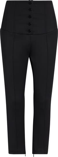 Designed with a corset-inspired yoke, these skinny stretch-enhanced capris are warmed with a substantial amount of wool. The narrow cuffs release with hidden-zip vents, while the back yoke features a decorative buttoned tab with angled strapping.