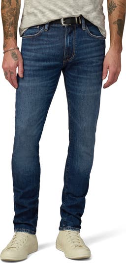 Clean and classic slim-cut jeans are made from gently sanded and whiskered indigo denim that features great stretch for comfort and fit all day.