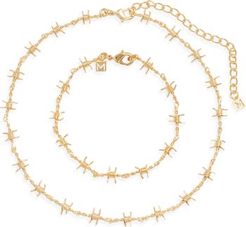 Shape the sharpest stack with this edgy barbwire necklace and bracelet set plated in gleaming 18-karat gold.