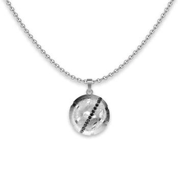 Inspired by a deflated basketball, this pendant features a sculptural design charged with tension, expressing the idea of resilience through imperfection. Its surface captures the twisted, sunken form of a ball that has lost its pressure—frozen in the moment of rising again after a fall, silently recording every act of defiance and determination|Meticulously detailed, the pendant recreates the signature texture and seam lines of a basketball, evoking the raw power of sport. At the heart of the distorted form, 0.204 carats of sparkling lab-grown diamonds are delicately set along the central seam—glimmering like beads of sweat, illuminating the unbreakable spirit within|More than an ornament, this is a wearable micro-sculpture, uniting athletic spirit, metallic form, and fine craftsmanship. Its compact, versatile silhouette makes it ideal for wearing solo or layered with other pieces.The pendant is the perfect choice for basketball lovers and style enthusiasts alike, redefining modern elegance through motion, meaning, and attitude.