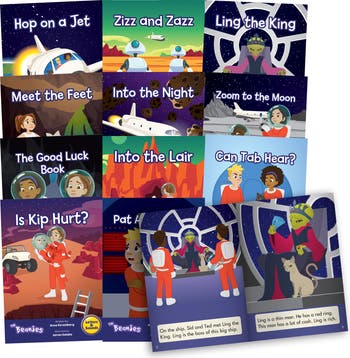 THE BEANIES: DIVERSITY DECODABLES - PHASE 3 - Written especially for older, struggling readers, we present our newest series of decodable books - The Beanies. The Beanies are Hi-Lo - age appropriate, high interest stories with an exciting array of adventures, centered around a cast of diverse, relatable, and teenage characters that reflect the modern world that we live in. Phase 3 (Phonics) set has been written specifically for the progression of Letters & Sounds. Phase 3 (Phonics) introduces the next 22 letter sounds. Phase 3 readers will follow students week-by-week through the program providing them text-based context to practice their emerging reading skills. Every story has been written with a strictly controlled text, so that students are only exposed to those letter sounds that they have previously learnt. Furthermore, tricky words are only included after they have been introduced. Build confidence in older, struggling readers as they master the phonics code. COMPATIBLE WITH OTHER READING SCHEMES: With book-banded reading levels provided, The Beanies Phase 3 set is designed to be easily integrated into other popular reading programs, supporting diverse learners with various teaching methods. Set contains 12 books at Phase 3 level. OVERVIEW: Introduces next 22 letter sounds. Inside front shows exact progression. Point and say page for tricky words. Bright, colorful illustrations. 12 Fiction readers. Engage all learners.
