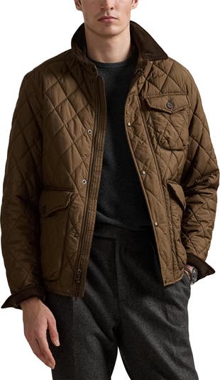 Crisp diamond quilting smartens a shirt-tailored jacket designed with lightweight insulation and a water-repellent shell to hold the elements at bay when you're out and about. It's made with recycled materials and a corduroy-topped collar to enhance your comfort, while multiple pockets keep your hands protected and your essentials secure and easy to access.