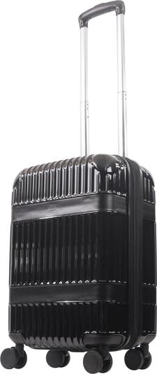 Travel smart and stylishly with the Martha Stewart Bedford 22" Hardcase Carry-On. Designed for modern travelers, this sleek suitcase features a durable hard shell exterior with a glossy finish and refined ribbed detailing. Its lightweight construction glides effortlessly on 360° spinner wheels, while the telescopic handle provides smooth, one-hand maneuverability. Inside, the fully lined striped interior includes a zippered divider, compression straps, and a mesh pocket to keep your essentials organized from takeoff to landing. Perfectly sized for overhead compartments, this carry-on combines practicality and polish for every journey.