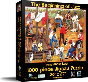 Discover the Melody with "The Beginning of Jazz" 1000 Piece Jigsaw Puzzle by SunsOut, a jazz-inspired masterpiece that perfectly captures the essence of Americana and music. Crafted in the USA with high-quality, recycled cardboard, each piece fits seamlessly with interlocking precision, offering a satisfying, eco-friendly puzzle experience. This sustainable masterpiece, featuring the vibrant artwork of Annie Lee, provides a harmonious blend of color and story, creating a captivating tableau that resonates with every jazz enthusiast. Constructed with durability for endless enjoyment, the puzzle comes with a large, full-color display box for storage and serves as an eye-catching keepsake. SunsOut's dedicated customer service guarantees satisfaction; if there are missing or damaged pieces, issues are readily resolved. This reflects SunsOut’s commitment to quality and service as a woman-owned small business. Annie Lee's fully licensed artwork infuses the puzzle with cultural richness, creating a journey through the jazz era rather than just an activity. "The Beginning of Jazz" puzzle, measuring 20" x 27" when completed, is an inspiring addition to your collection whether you're a puzzle aficionado, a lover of jazz, or seeking a new pastime. Embark on this engaging journey through history and let the jazz-inspired puzzle captivate your senses again and again.