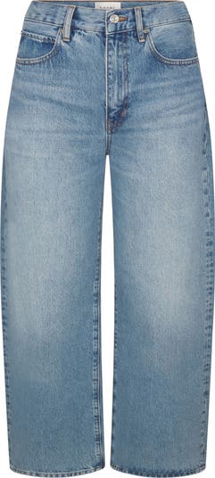 Modern and casual-chic, these nonstretch jeans feature a superhigh waist and a full-length barrel silhouette that's slimmed down for a less dramatic look.