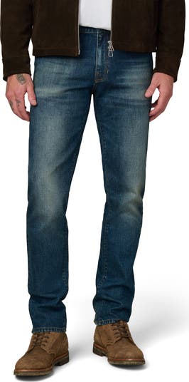 Streamlined and versatile, these slim-cut straight-leg jeans are made from shape-retaining stretch denim in a medium wash with rugged fading.