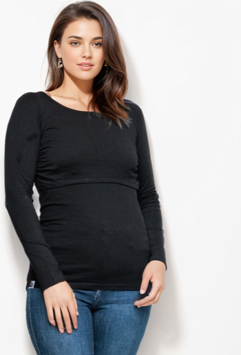 Designed with breastfeeding mums in mind, this long sleeve top offers a comfortable, relaxed fit that allows for easy movement while nursing. The extended length offers full coverage, providing extra comfort during breastfeeding sessions while flattering a variety of body shapes and the no-fuss feeding hole allows for easy and discreet nursing for mums. . The design promotes a natural breastfeeding position, which is beneficial for both milk flow and your baby’s well-being. The fabric’s gentle feel against the skin ensures comfort throughout the day, whether you're running errands or spending time at home. Eco-friendly and sustainable, this black long sleeve t-shirt is an essential addition to your nursing wardrobe, combining style, comfort, and functionality for every stage of motherhood. Elevate your everyday wear with this thoughtfully designed breastfeeding piece.