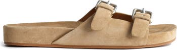 This double-strap sandal is made from soft suede with adjustable metal buckles for a custom fit. The contoured footbed with MWL Cloudlift cushioning provides all-day comfort, while the rubber sole adds durability.