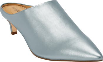 A smooth, supple leather-like upper distinguishes a streamlined mule in an ultra-stylish kitten heel silhouette.