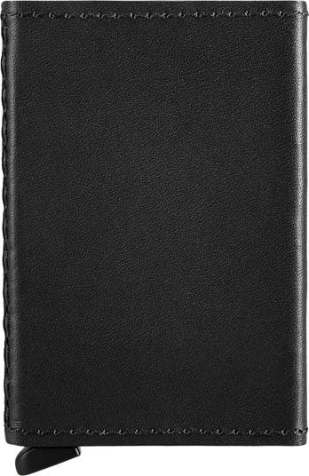 Innovative cardholder with an RFID-blocking aluminium core to protect from electronic thieves. Secrid's patented lever technology ensures up to 5 cards can be retrieved in one smooth motion. Wrapped in premium vachetta leather for an elevated finish.