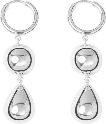 Swingy bauble drops—one a sphere, the other a teardrop shape—add joyful gleam to these beautifully sculpted drop earrings plated in sterling silver.