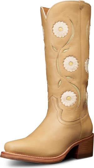 Decorative stitching, intricate cutouts and floral inlays add a little romance to this Western boot crafted with a classic stovepipe silhouette, slightly pitched heel and durable sole.