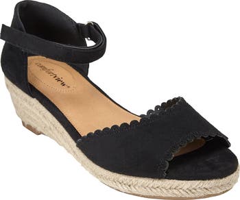 - 1/2" jute-wrapped platform" 2" jute-wrapped stable wedge heel