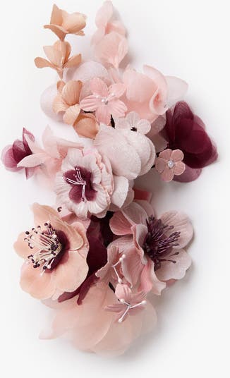 - Metallic blush crepe de chine, ballerina pink silk habotai, pale pink silk cross-dyed dupioni, silk organza, and cranberry silk chiffon petals