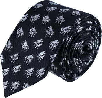 This handsome and elegant necktie is part of our Chopin Classical Piano Collection. Done in a rich black silk, featuring a grand piano with its top open and ready to be played. This classy necktie levels up the sophistication of any suit or tuxedo and pairs perfectly with the braces, pocket square, and bow tie that this collection offers. Great for music lovers or that distinguished gentleman who desires that extra pop of class for his wardrobe. The necktie measures 57 1/2 x 3 inches, and makes a perfect gift for Christmas, Father's Day, birthdays, or anniversaries. Pair it with your favorite suit or tuxedo for any affair to stand out from the crowd.