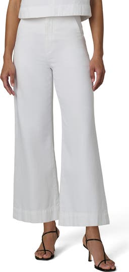 These nonstretch-denim jeans feature a high waist and ankle-length flared legs for clean, streamlined look.
