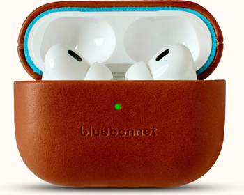 Crafted from premium full-grain saddle tan leather, this AirPods Pro case brings understated elegance to your everyday carry. It’s lined with our signature Bluebonnet blue microfiber for a soft, secure fit and built for 360° protection with wireless-charging convenience. Designed to age and patina beautifully.