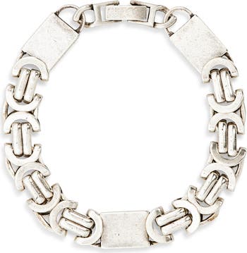 A signature antique finish adds an edgy aesthetic to a chain-link bracelet featuring textural links finished in silver.