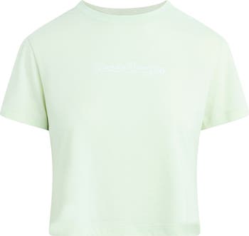 A cropped fit and supersoft fabric in a sweet pastel hue will make this logo-graphic T-shirt your favorite warm-weather throw-on-and-go style.