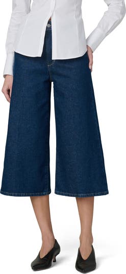 Refresh your denim with the vintage-inspired style of high-rise, dark-wash culotte jeans made with roomy wide legs that end above the ankles.