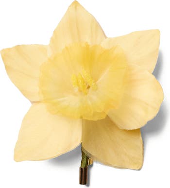 Best known for a single bloom on each stem, the daffodil symbolizes renewal, hope and new beginnings, often representing the arrival of spring and the promise of positive change. Delicately handcrafted with layers of pale yellow silk organza and silk taffeta petals, this striking bloom features a hand-painted silk organza corona and is centered with three handmade stamens dipped in sparkling yellow and white mica. The daffodil is the birth flower for the month of March and is the national flower of Wales.