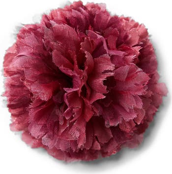 Known as the flower of love, the carnation has been revered for centuries as a symbol of commitment and devotion. This exquisite bloom is lovingly handmade with layers of dark pink cross-dyed silk iridescent chiffon, silk taffeta and silk organza. The carnation is the birth flower for the month of January, the state flower of Ohio, and the national flower of Spain, Monaco and Slovenia.