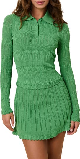 Intricate cable-and-openwork stitching elevates this fitted sweater finished with a polished half-placket and structured spread collar.