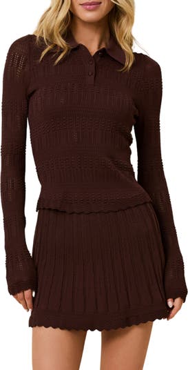 Intricate cable-and-openwork stitching elevates this fitted sweater finished with a polished half-placket and structured spread collar.