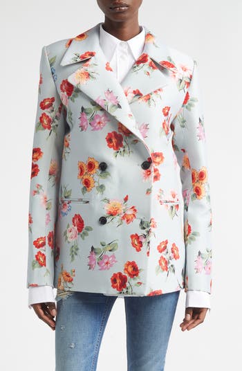 Maxwell set a celebratory mood for his tenth-anniversary runway collection, where he debuted this bold-shouldered tuxedo jacket with painterly flora blooming in vivid hues against crisp wool-silk faille.