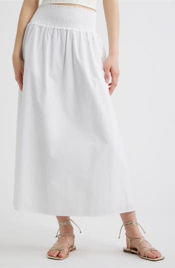 Breeze through sunny days and vacay plans in this crisp cotton-poplin midi skirt featuring Hill House Home’s signature hand‑smocked waistband, which can be styled high or low on the hips.