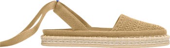 A breathable knit upper partially made from recycled plastic water bottles and a cushioned footbed lend supreme comfort to this espadrille-inspired flat that wraps and ties around your ankle.