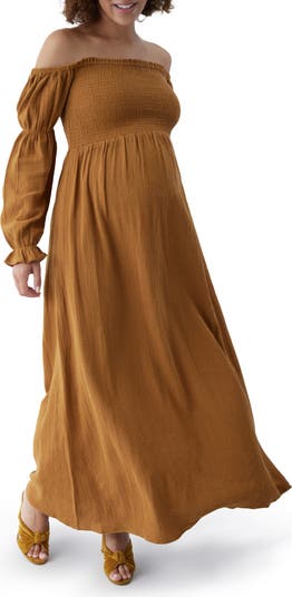 Bring on the pregnancy photo shoot so you can choose a lightweight cotton gauze dress designed with sweet smocking and a graceful, bump-friendly drape.