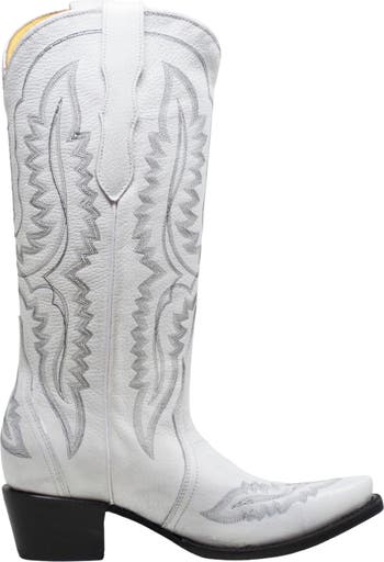 Step into refined elegance with these pointed-toe boots in smooth white floater leather, designed to make a sophisticated statement. The shaft features delicate silver-toned embroidery that adds depth and distinction, offering a modern, fashion-forward twist on a timeless silhouette. A durable leather sole ensures all-day comfort and resilience, making this pair ideal for both formal settings and elevated everyday wear. Proudly made in Mexico, these boots embody superior quality, contemporary style, and understated luxury.