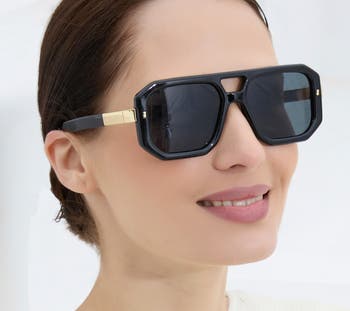 - Oversized square frame inspired by classic Jackie O–era sunglasses