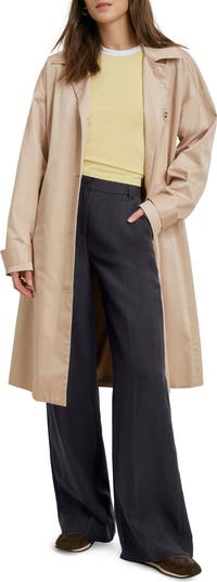 Dropped shoulders enhance the relaxed fit of this longline trench made with a kiss of comfortable stretch.