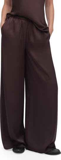 Serve up effortless energy in these satin wide-leg pants featuring a comfy elastic waistband and handy pockets.