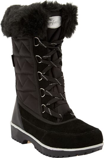 - Quilted nylon and suede upper with fleece lining and foam insulation