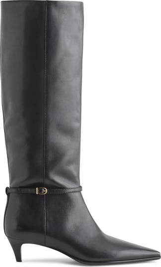Made from smooth leather, this knee-high boot features a sleek snipped toe and kitten heel for a streamlined look. Complete with Madewell's signature MWL Cloudlift Lite padding for maximum comfort, the slender buckle strap adds a nice finishing touch to this quintessential shoe.