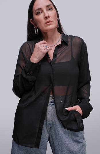 Slightly oversized, this gauzy sheer fabric long sleeve button up is the perfect and most versatile statement piece for your closet.