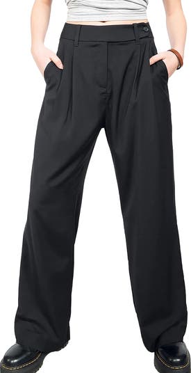 With a high waisted fit, tab front closure, and double front pleats, this long line loose leg trouser is the perfect mix of flowy and tailored.