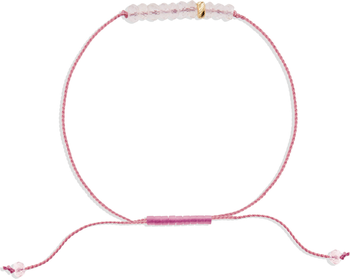 The Love Bracelet is a wearable study in energy, intention, and form, centered around Rose Quartz, long associated with unconditional love and emotional openness. Its presence is soft and understated, inviting warmth without excess. The design follows a numerological structure built around 11 and 8. Eleven represents intuition and alignment, while 8, marked by a solid 14k gold bead placed in the eighth position, symbolizes continuity and good fortune. Strung on a dusty pink nylon cord with an adjustable slide closure, the bracelet is designed for everyday wear—delicate, grounded, and meant to be returned to over time. This piece makes a meaningful gift.