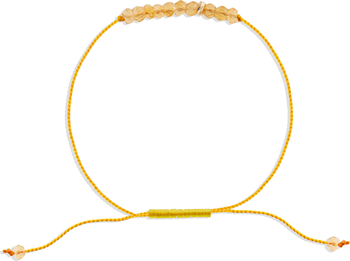 The Prosperity Bracelet is a considered study in energy, intention, and form, centered around Citrine—a stone long associated with prosperity, creative flow, and optimism. Its presence is warm and expansive, introducing brightness without excess and intention without force. The design is structured around a numerological sequence of 11 and 8. Eleven represents intuition and alignment, while 8, marked by a solid 14k gold bead placed in the eighth position, symbolizes continuity and good fortune. Together, the sequence introduces intention through order, repetition, and material contrast. Strung on a marigold nylon cord with an adjustable slide closure, the bracelet is designed for everyday wear—light in presence, structured in form, and meant to support momentum over time.