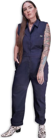 In soft cotton stretch, this high waisted coverall features a two button adjustable waist to cinch when you want and when you don't, a back elastic waistband for maximum comfort, plus lots of deep pockets to store your gear.