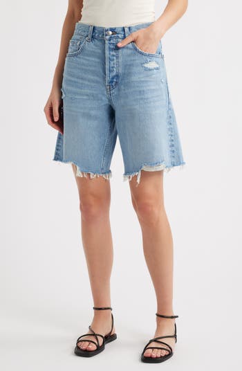 Easy through the hip and thigh, these nonstretch-denim shorts are cut with a mid-rise waist, raw hems and Madewell's longest inseam yet.