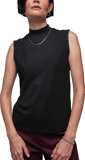 A breathable cotton tank with a relaxed fit and mock neck. An easy closet staple made for layering or wearing on its own.
