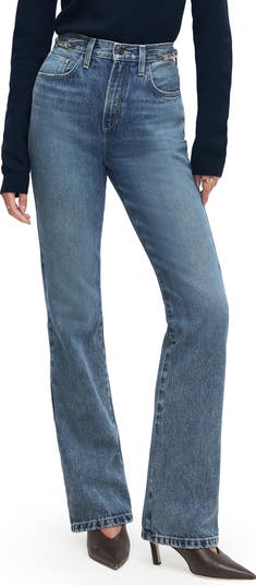 Casual-chic for day or night, these nonstretch-denim jeans create a sleek look with a superhigh waist and sleek bootcut legs.