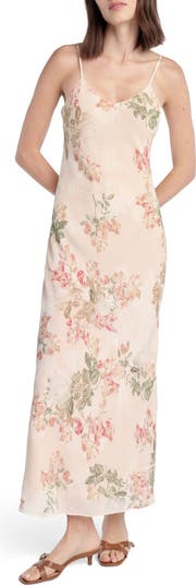 A nostalgic floral motif sets the tone for this georgette maxi slipdress, bringing soft color and vintage romance to the languid silhouette. Designed with a scoop neckline and adjustable straps, it's a perfect choice for weddings, dates and garden parties.